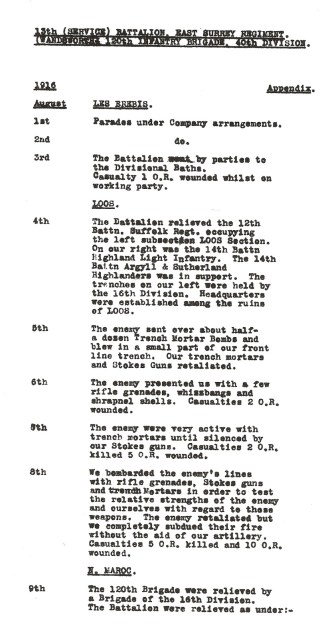 | This is just one page of the 13th Battalion War Diaries, at the beginning of August when Bert was writing these, just to show you a bit of what Bert & the rest were going through at the time……Awful |