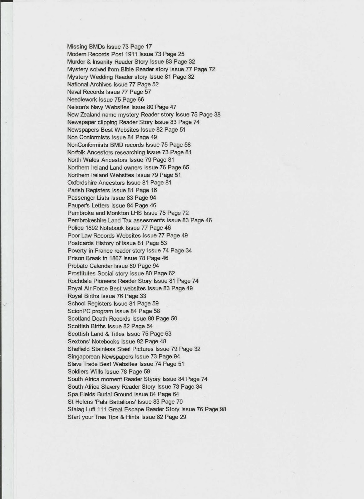 Please remember though not everything is listed, you still have lots of other Articles and Subjects covered in the Magazine, Like Q and A and On The Record and don’t forget The Guide which is a wealth of information.