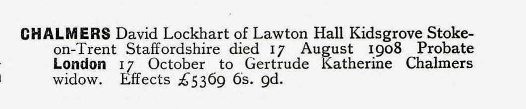 and her father was David Lockhart Chalmers b1861 Liverpool – d1908 He was a Chartered Accountant.