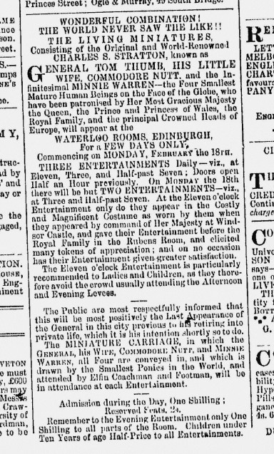 The following year this was one of the newspaper adverts for their show in the Edinburgh Evening Courant on February 13th 1867..