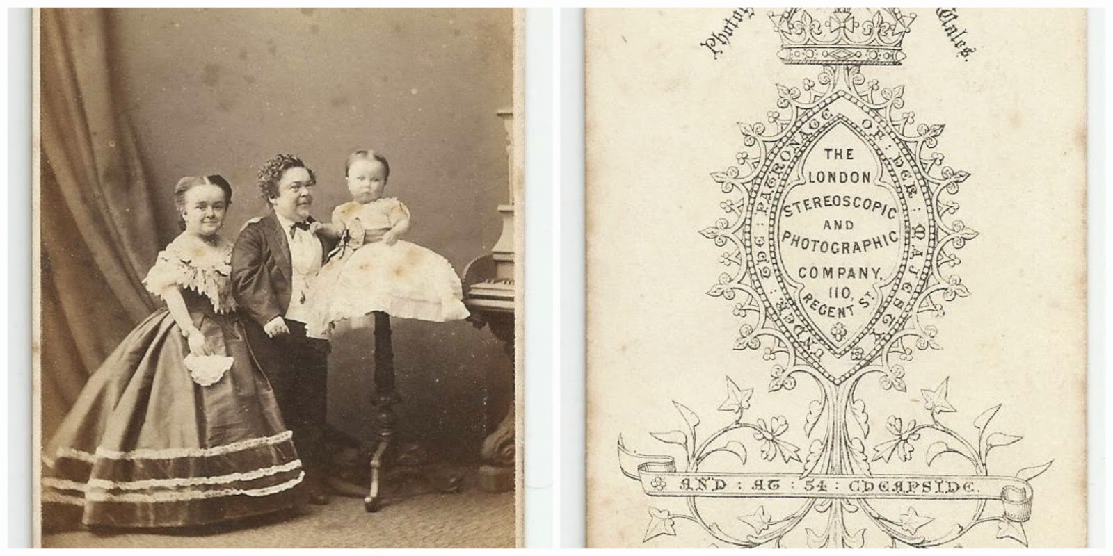 ‘Tom Thumb, wife and child’ by London photographers….People collected cards like this of famous people as they were such a fascination to them…