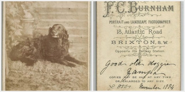 I spent all one evening very carefully taking the photo cards all out of the albums, ready for scanning..(I use tweezers) Some of the CDVs are a bit different too, I found my very first Dog portrait, all on his own without his owner……….the family obviously animal lovers, and back of the CDV written on too with a date 🙂