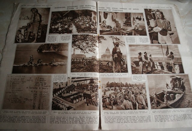 Above…….Hongkong, Singapore and elsewear, after the final defeat of Japan. Scenes of surrender and release of prisoners.