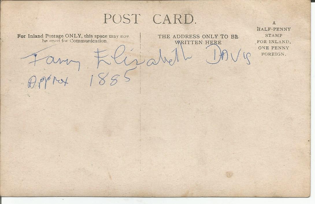 This last Postcard photo is totally blank on the back, a mystery……is this young lady related to Fanny, is she a friend, or maybe nothing to do with her at all…we’ll probably never know…unless someone out there knows this family ??