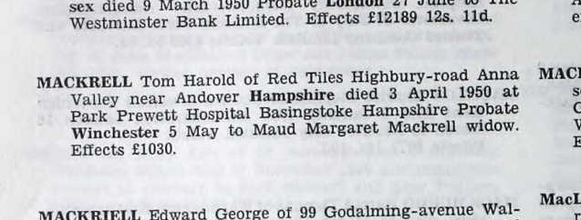 Following on from this research on Ancestry I found Tom H Mackrell’s last will and testament record…