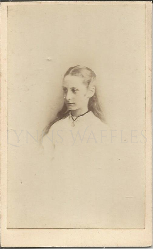 Another of their daughters, their 10th child, Constance Mary Grubbe, born in 1860, died in 1937. This is another I found a named CDV of. She was never married. What a beautiful picture of a very serious-looking little girl here below: