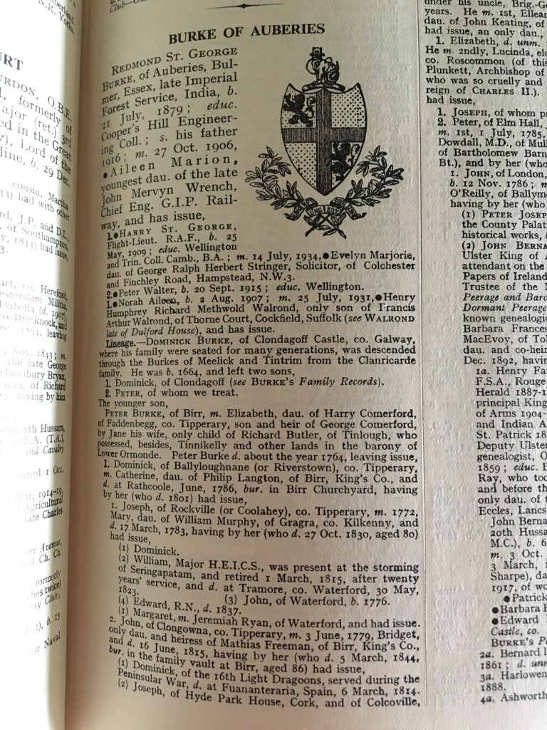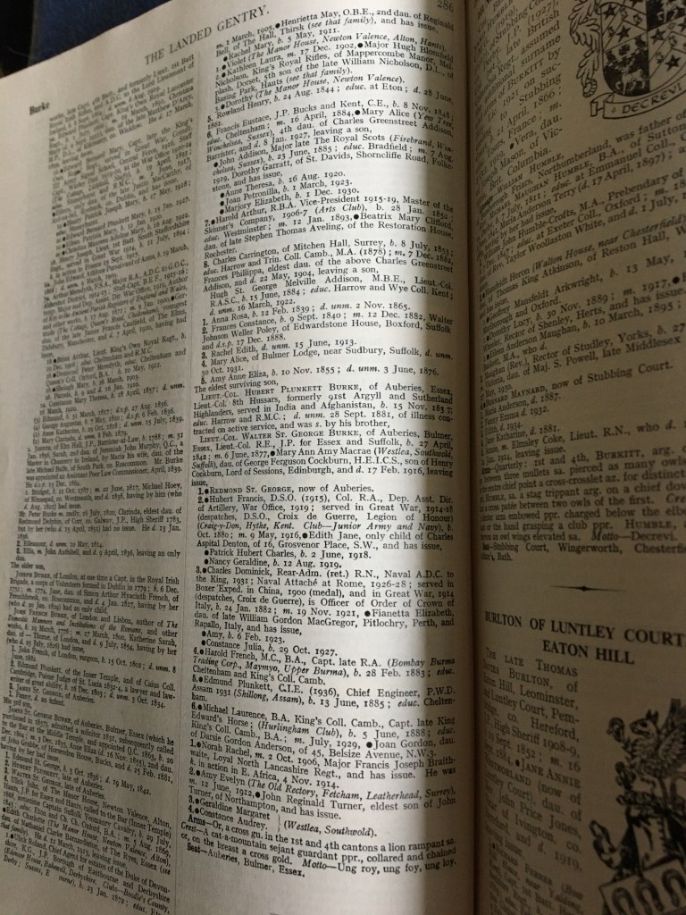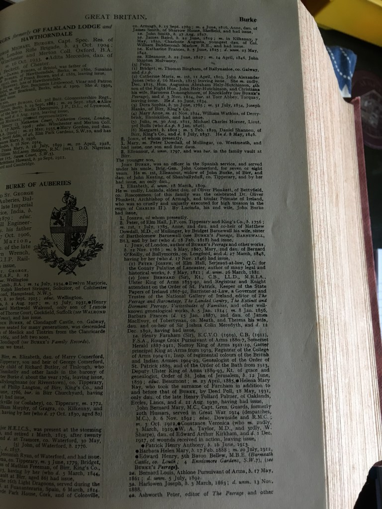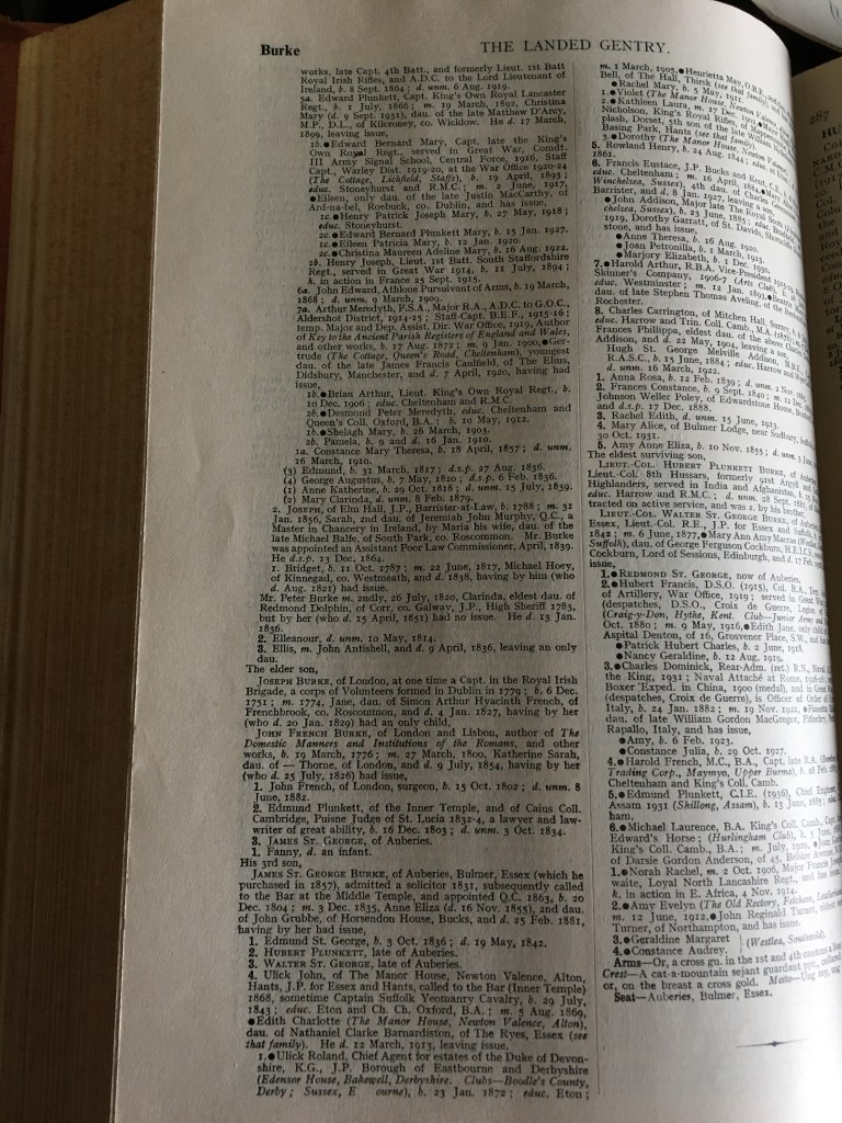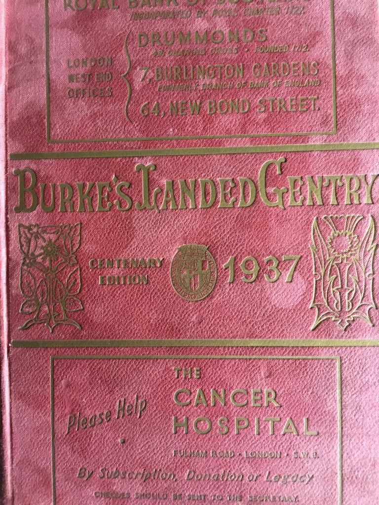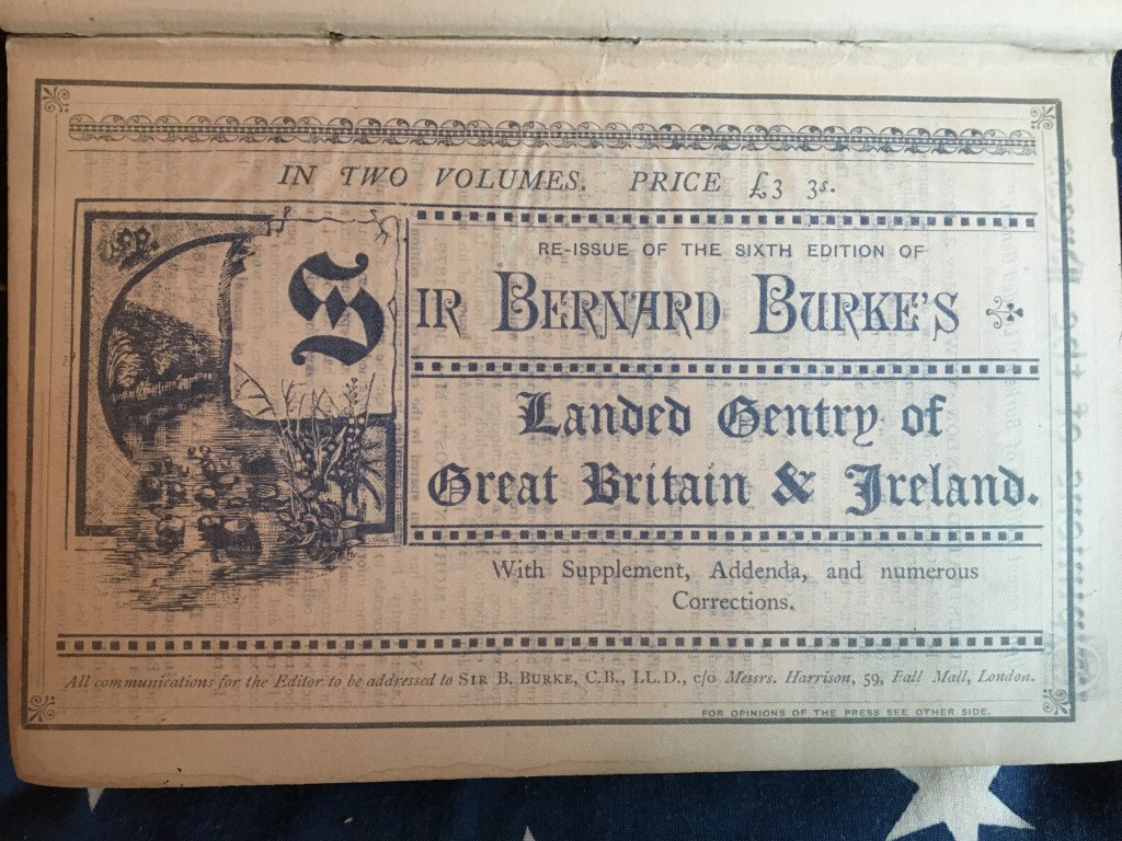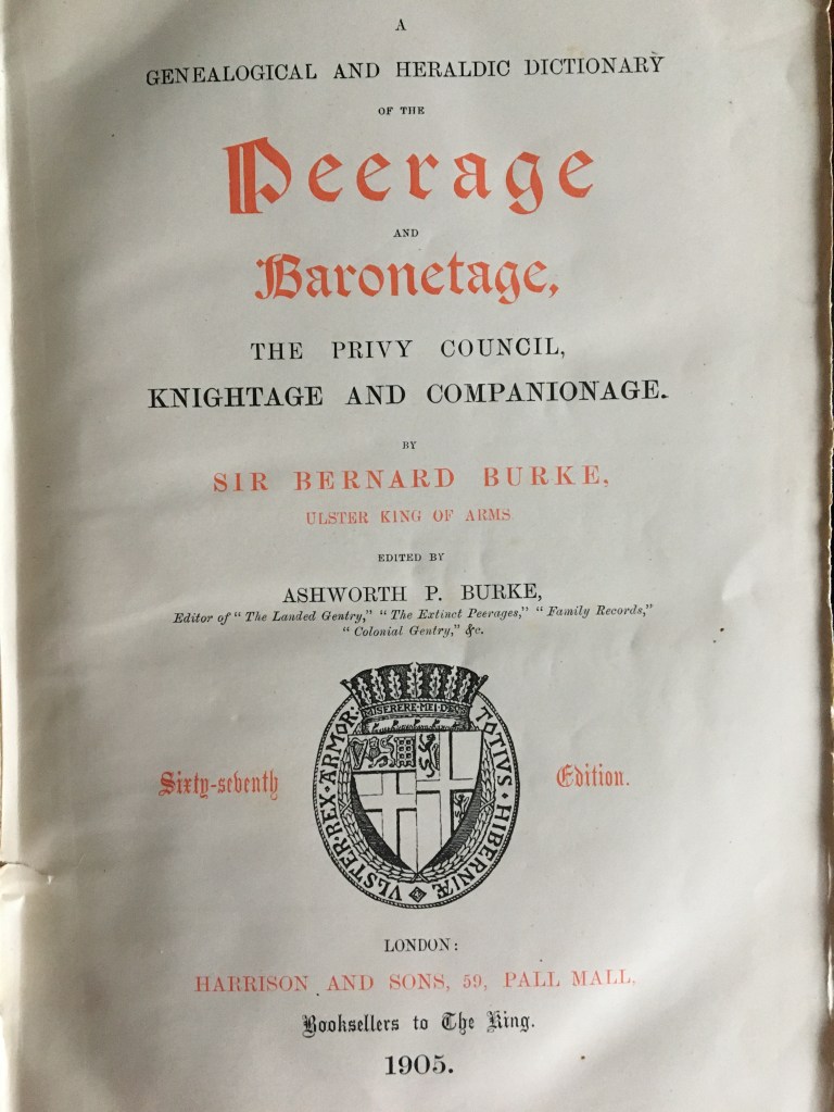 The founder of Burke’s Peerage etc John Burke, was born in 1786 and was Frances Constance Burke‘s 1st cousin, twice removed. Views of my two glorious Burke’s books below, fabulous to be able to use them and research from them, they are huge! Direct link for more information: Burke’s Peerage