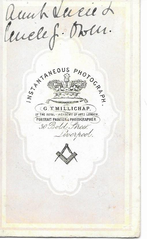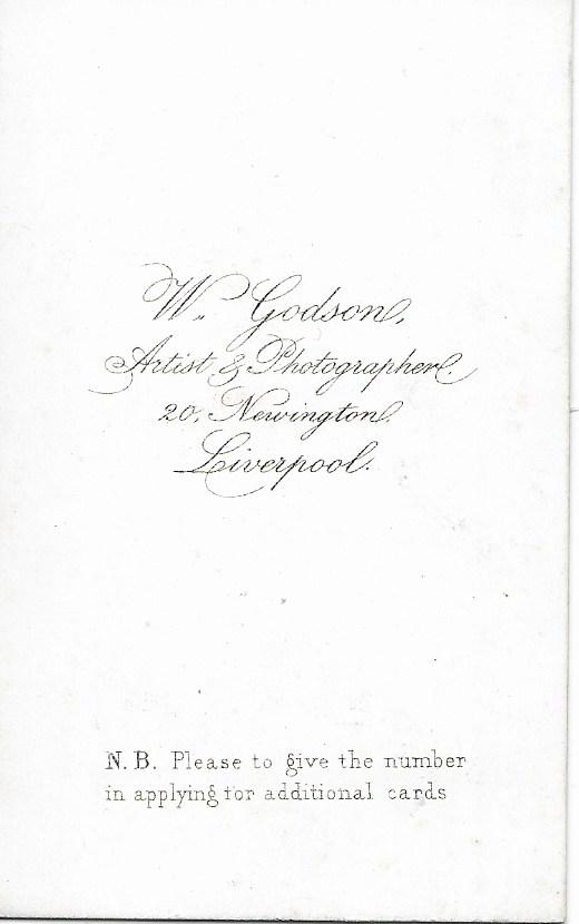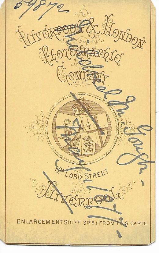 Mildred Mary was one of the sisters born in St Micheal, Azores, Portugal, also baptised there. She was with her family living in Liverpool at the time of the 1871 census, then in 1877 Mildred had this lovely CDV photo taken at the studios of The Liverpool & London Photographic Company at 12a Lord Street, Liverpool.
