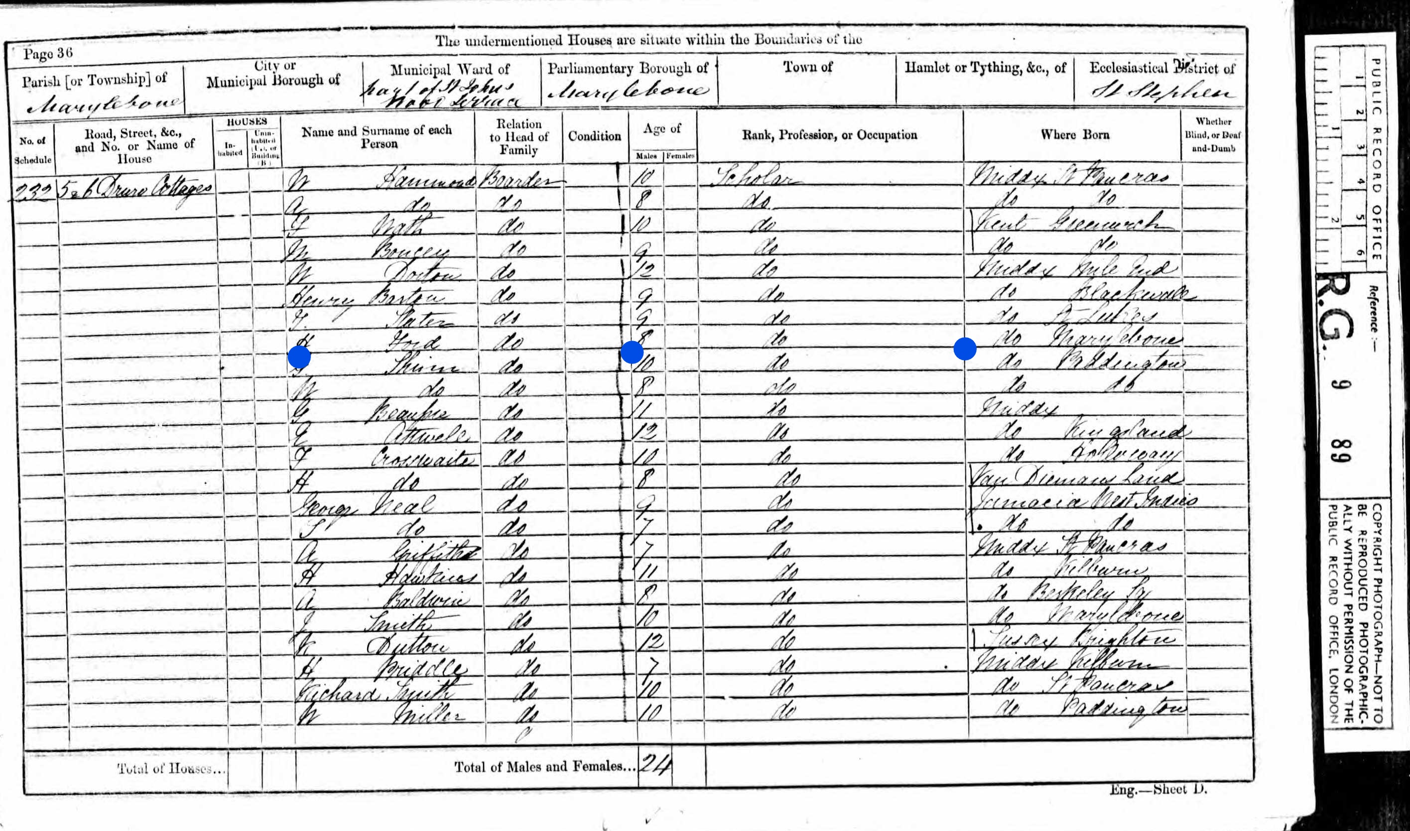 Last of the six was 6) Henry William Townsend Ford born on 3 July 1852, now I have found him I think in the 1861 census as a boarder living at 5/6 Douro Cottages. It seems these were formerly called Cochrane Terrace, St Johns Wood, St Marylebone, Middlesex. It definitely looks like a School but I haven’t found any information about it yet. Has anyone come across this place? I would love to add a bit more about it, a private school? As the family didn’t seem to be short of money.
