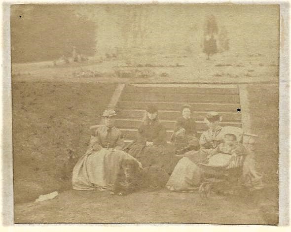 Love this image above, taken in the early 1860’s it’s quite faded but such a gem. Looks like the lady of the house on the left and maybe the Nanny/Nursemaid looking after the child on the steps and the child in the pushchair right. No writing at all sadly.