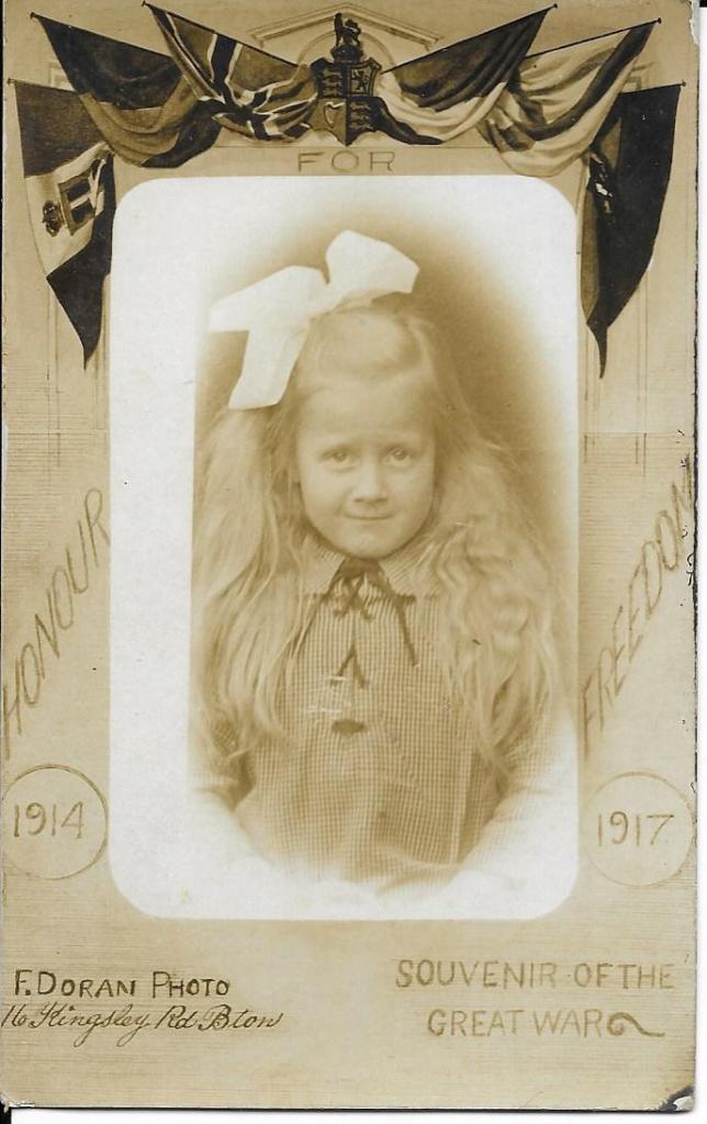 I have never ever seen anything like these beautiful postcards before. For Honour Freedom. 1914-1917. Souvenir of the Great War. Flags of the Allied Forces at the top. Just the bottom two are written on, I bought all three together so am assuming the three children are related. Aren’t they unusual. Such a shame we don’t have these childrens names.