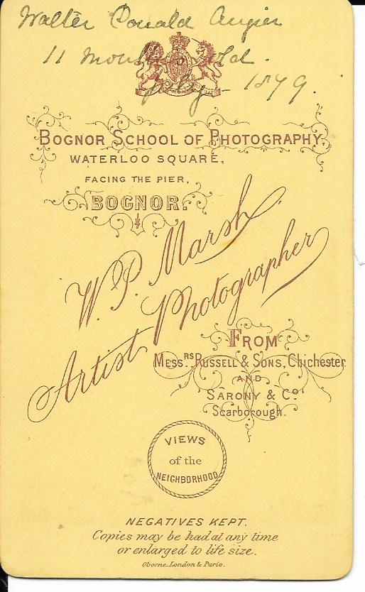 By 1878, W. P. Marsh had moved into a new studio in a prime location on Bognor’s seafront. The studio was situated on the eastern side of Waterloo Square, between Bognor’s Fire Station and The Beach Hotel, and faced the Pier and a popular stretch of a Bognor’s beach.’ Photo History Sussex: https://www.photohistory-sussex.co.uk/Marshbiog.htm