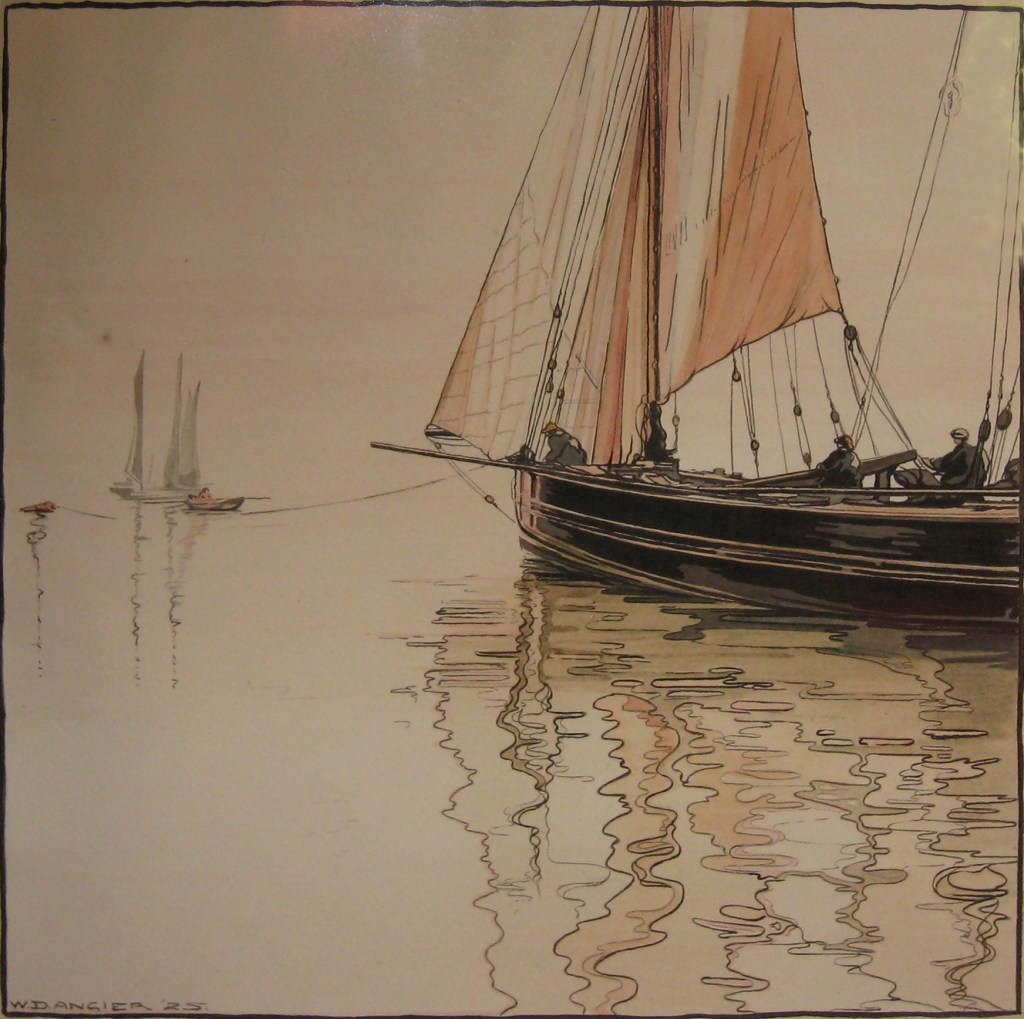 I have him living in Carbis Bay and working from ‘Meadow Studio’, which was above Porthmeor Beach – close to where the Tate Gallery now is. When he held his first one-man show at Lanham’s Gallery in 1927, the reviewer commented, “Mr Angier, who has had an adventurous life in many parts of the world, has only, we believe, begun to paint during the last few years.” I have not been able to find out what such adventurous life comprised – there was a suggestion in one auction catalogue that he had been a racing driver, but I have found nothing to corroborate this.