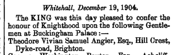 Another Uncle, Sir Theodore Vivian Samuel Angier was made a Sir in 1904.