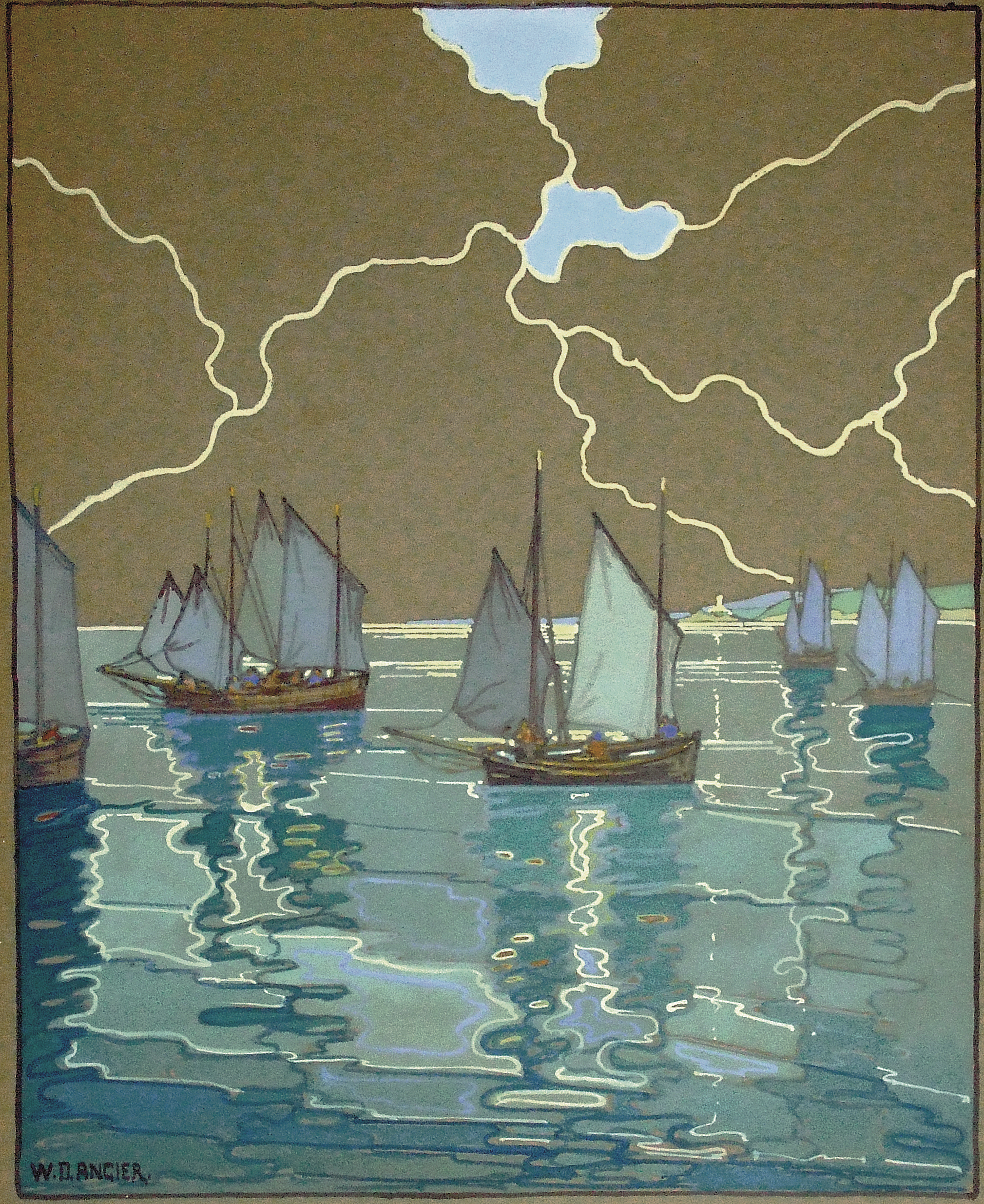 I have him living in Carbis Bay and working from ‘Meadow Studio’, which was above Porthmeor Beach – close to where the Tate Gallery now is. When he held his first one-man show at Lanham’s Gallery in 1927, the reviewer commented, “Mr Angier, who has had an adventurous life in many parts of the world, has only, we believe, begun to paint during the last few years.” I have not been able to find out what such adventurous life comprised – there was a suggestion in one auction catalogue that he had been a racing driver, but I have found nothing to corroborate this.