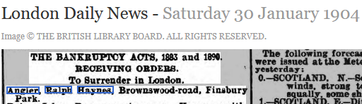 Ralph in the 1881 census, aged 16 and was a Boarder at the “Grammar School” Preist End, Thame in Oxfordshire. Then the next I found of him was a court report in 1903 that his occupation was a Mining Engineer and he applied to get his money back, he lost it on appeal and it seems it made him Bankrupt. But only for a few months as he applied for a discharge: