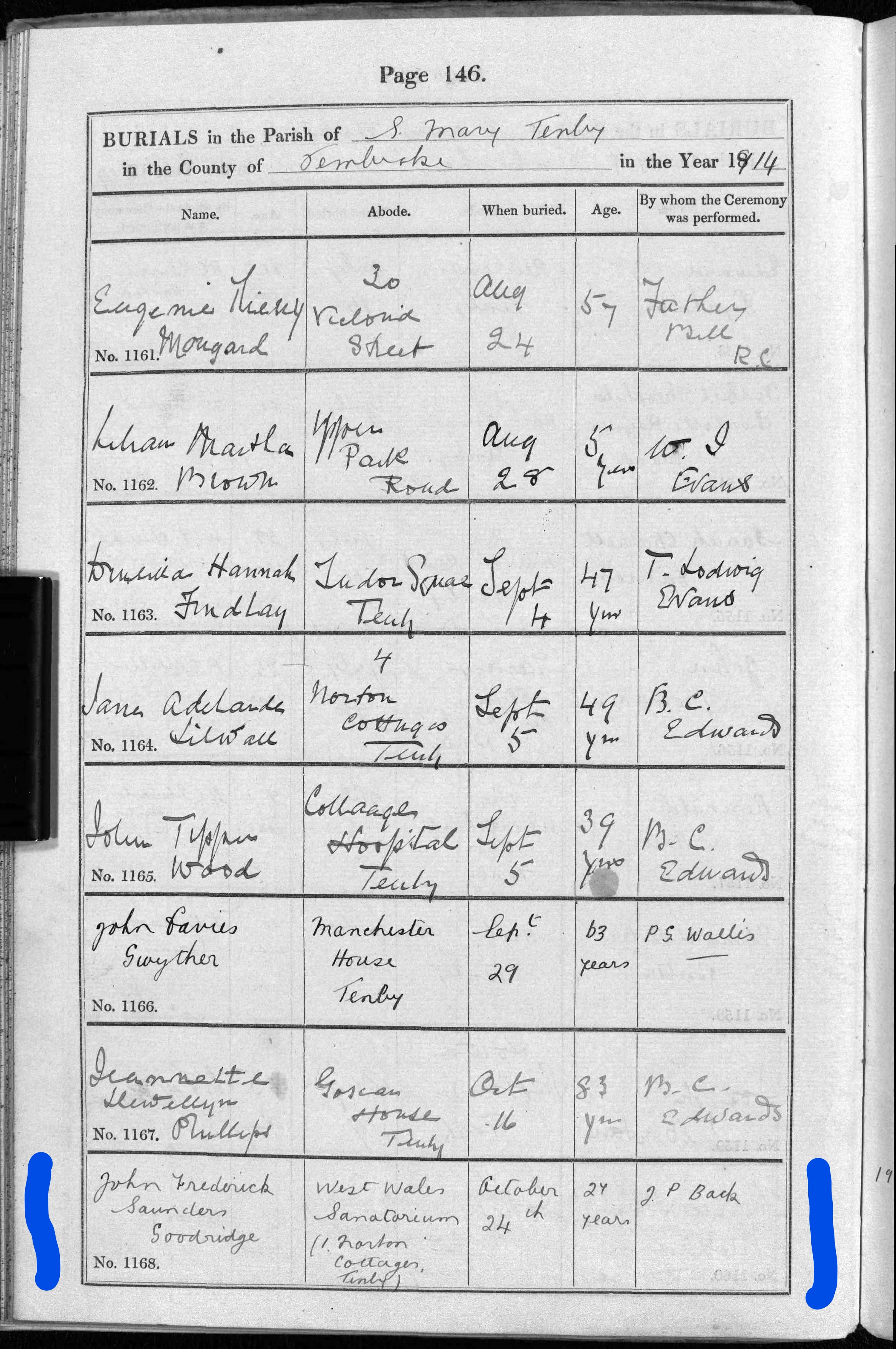 John Frederick S Goodridge was born in 1887 in Tenby, Pembrokeshire, Wales. Is this ‘Jack?‘ He died in 1914 aged just 27 and I’ve not found any Military records for him as yet. On his burial record on the 24 October 1914, it states that he died in the West Wales Sanatorium that was in Llanybydder, Carmarthenshire. Did he suffer from Tuberculosis?