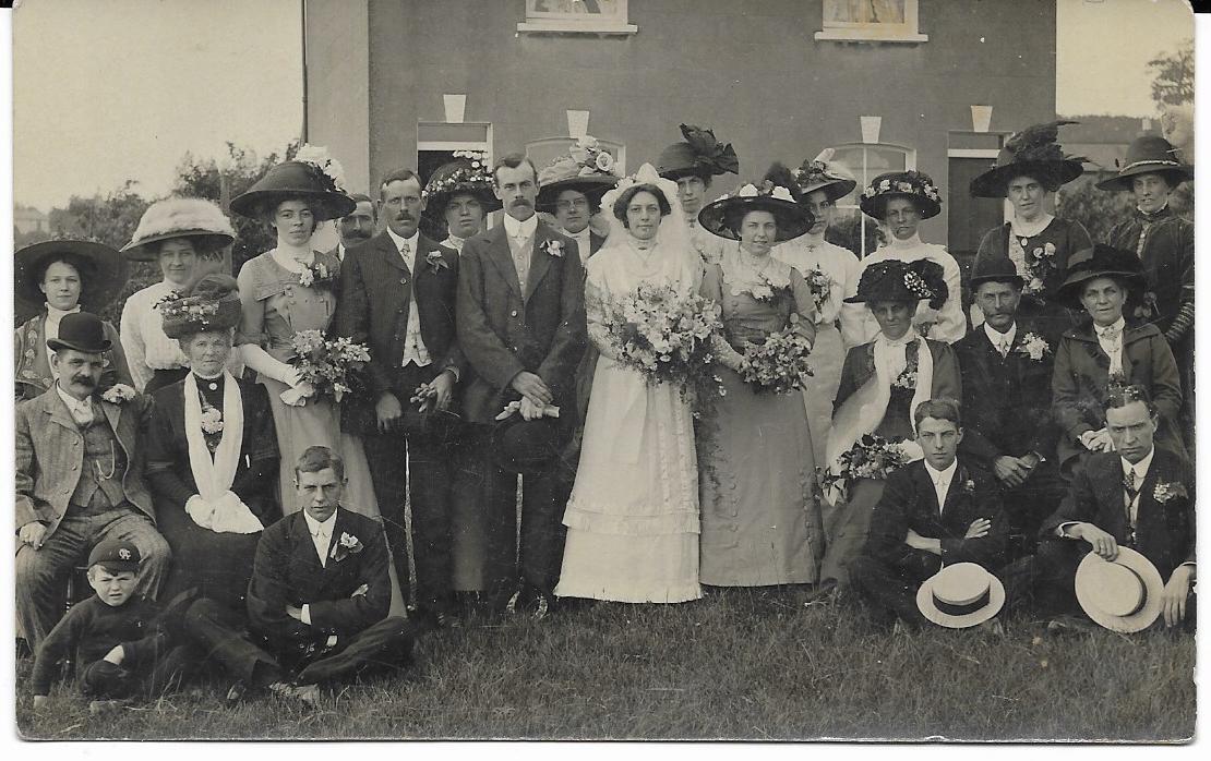 Everyone has their best hats on for the occasion of this wedding on the 5 June 1912, most are adorned with flowers and just look at the bride, Emily’s bouquet is so beautiful. Very appropriate too as the groom Percy Henry Mountford was a Gardener🌸