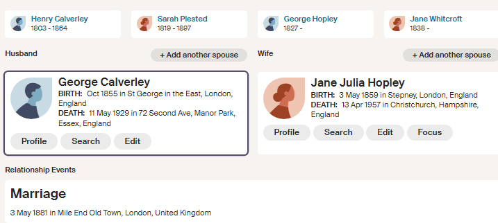 This is the link to the public family tree, with about 100 people on it, on Ancestry: Nellie Mary Calverley Tree