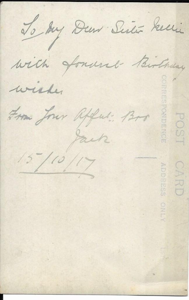 Written on the back of this next one is ‘Yours Faithfully R.Lewishon? Levisoln? not too sure of the signature. Dated Aug 1919. I’ve not come across a similar name in the family so maybe a friend.