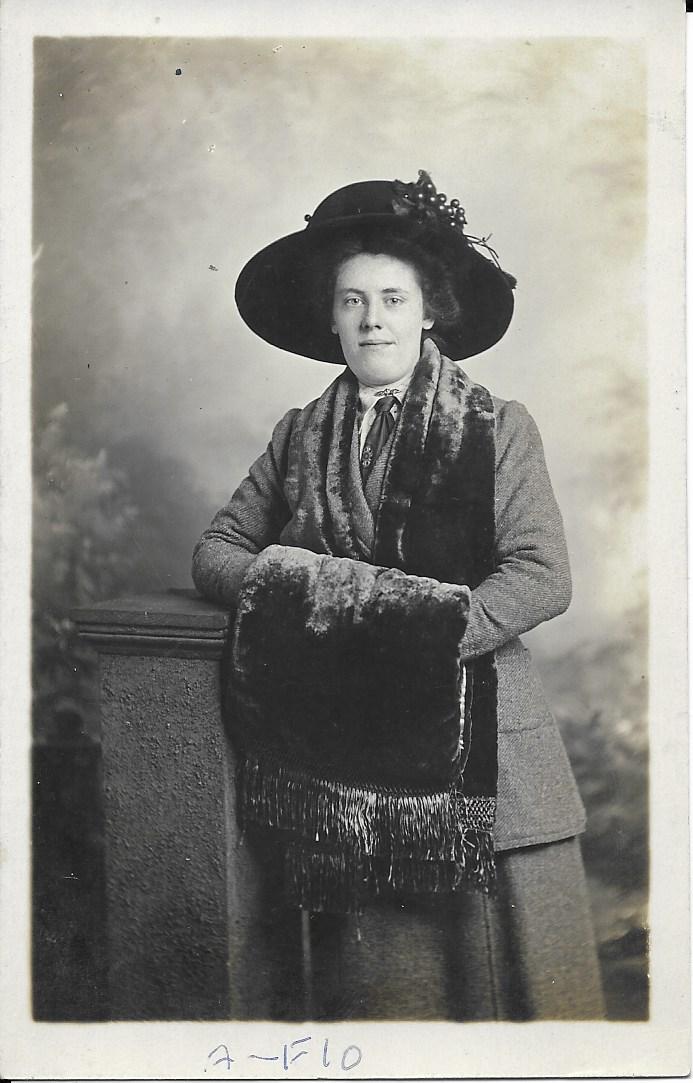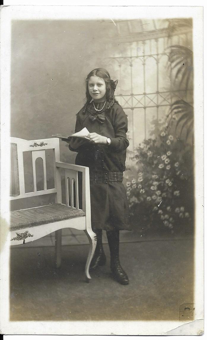 The lady on the right it says on the back: ‘Flora. Died 26 Jan 1931 aged 20′. Flora had been born Flora Elizabeth Millicent on 14 Dec 1910. How awful that she died so young.