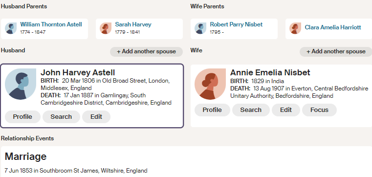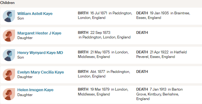 Here’s the link to the larger-than-usual family tree I have compiled on Ancestry: Astell Kaye Family Tree