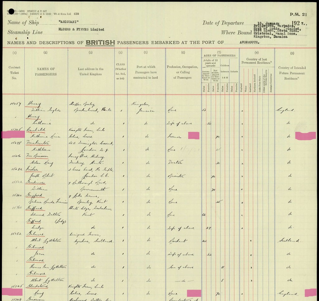 In all the following census records they are living at Knight’s Farm together. I was also quite chuffed to find at the age of 70 they both went on a trip to Barbados: