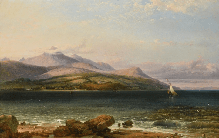 A beautiful painting of Arran by George Edwards Hering with Brodick Castle in the distance.