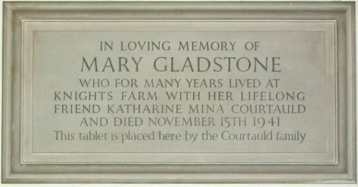 Their daughter Katherine Mina Courtauld was a remarkable woman, she never married but lived with her life partner Mary Gladstone 1856-1941 for over 50 years at Knight’s Farm, Colne Engaine, Essex. And no Mary was not the daughter of Prime Minister William Ewart Gladstone, as it says in several articles I’ve read! He did have a daughter Mary but she was born 9 years earlier than this Mary Gladstone and the big difference was that the Prime Minister’s daughter married the Reverend Harry Drew in 1886. Katherine Mina’s partner Mary was born on 13 November 1856 in Edgbaston, Warwickshire and was the daughter of Thomas Gladstone and Mary Gibbons Whitfield, Thomas was, according to the 1888 Kelly’s Directory of Birmingham Occupation: Wine, Spirit & Ale & Porter Merchant. (See Mackie & Gladstone): Premises at 88-91 Dale End, Birmingham.