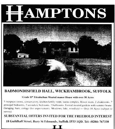 1992. 22 May. Badmondisfield Hall is for sale with Hamptons.