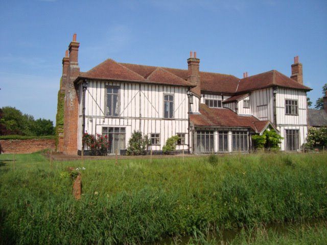 From The Suffolk County Heritage Website, a description of the property: Large sub-rectangular moat of 2.1 acres containing a substantial 15th-century timber-framed building with exposed framing, partly with plaster infill and partly with brick-nogging. Restored in the 20th century (S4). The house was considerably altered in the 18th century when the W cross-wing was largely rebuilt; the main access was by a 2-arched 18th-century brick bridge across the moat (S5). `Graceful little summer house with white plaster walls and a Georgian porch and windows’ beside the moat at TL 7473 5710 (S6). To the N of the moat is a large 6-acre enclosure bounded on the N by large ponds (?for fish). The enclosure was named Dovehouse Meadow in 1841 (S7). In 1841 there was an entrance causeway in line with the road approaching from the NE, destroyed by 1886 by the amalgamation of two ponds (S8). A tree-lined avenue, shown in 1841 and 1886, led from the entrance across the enclosure towards the bridge across the moat. To the NW of the moat, there is another linear pond (?again for fish, though possibly formalised in mid 19th century) and a smaller rectangular pond is shown between the linear pond and the moat in 1841 but had gone by 1886. A park adjoins the moat on the S side (see WBK 011), to which there is access by a timber bridge.