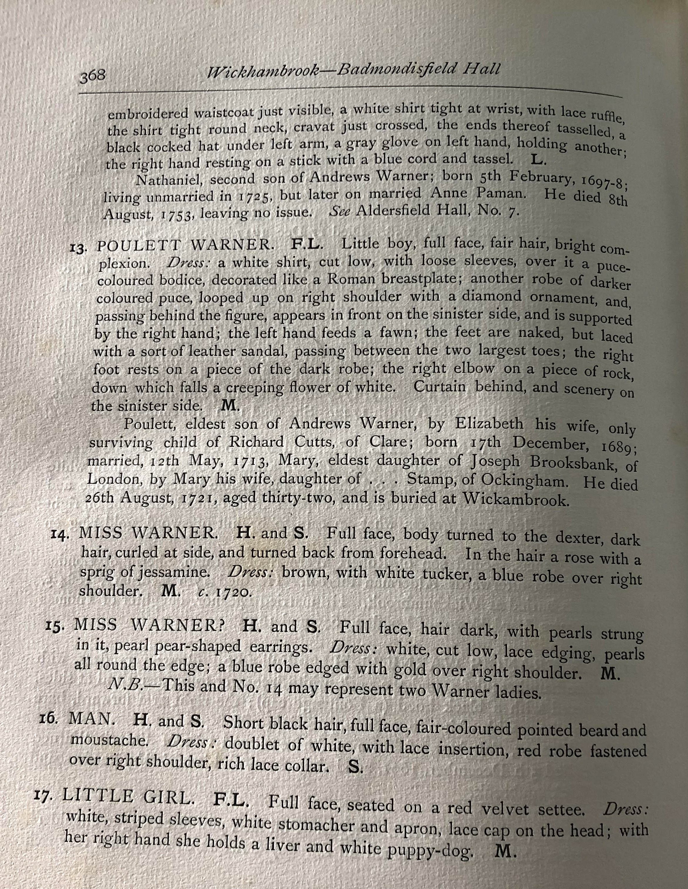 next, it passed to his brother Nathaniel Warner 5 Feb 1697-8 Aug 1753