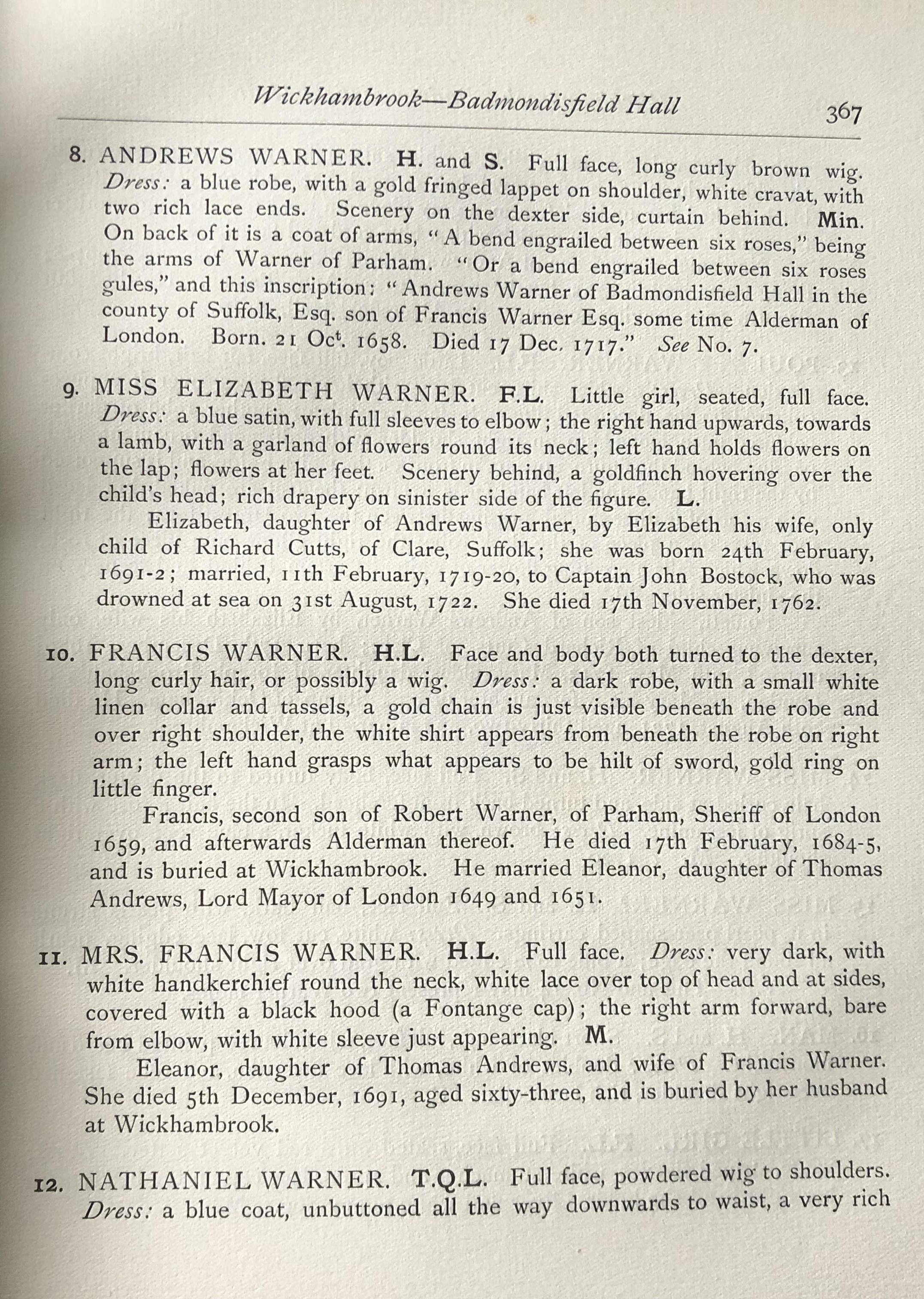 it then passed to his son Andrews Warner 21 Oct 1658-17 Dec 1717