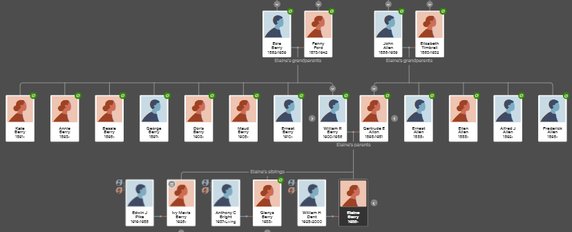 This is the Family Tree that I have fairly quickly compiled on Ancestry. There may be some mistakes but at least everyone can see the family names. Obviously to be sure of everyone you would need confirmation with certificates.