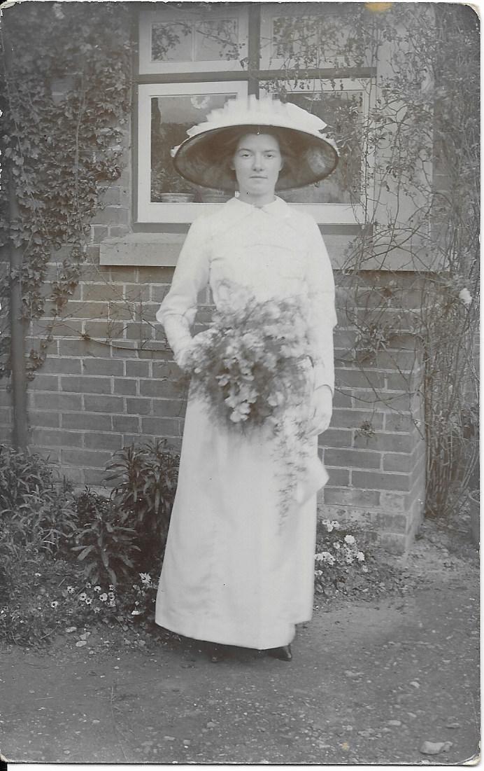 On the back of the 3rd photo above: “Outside Furze Hill. Bridesmaid to Mary (Beale?) Pale Blue Dress. Black Hat with a ruche of pale blue tulle. Approx 1910” In fact I believe this to be one of Mary Beale’s sisters Ellen. Mary Beale 1879-1937 married on 9 July 1913 to George Herbert Freemantle 1892-1915.