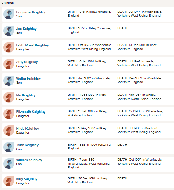 Here’s the small family tree I have compiled on Ancestry for the Keighley and Beale families: Keighley & Beale Family Tree