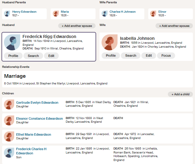 A small family tree here, a direct link to Ancestry: Frederick Rigg Edwardson Tree