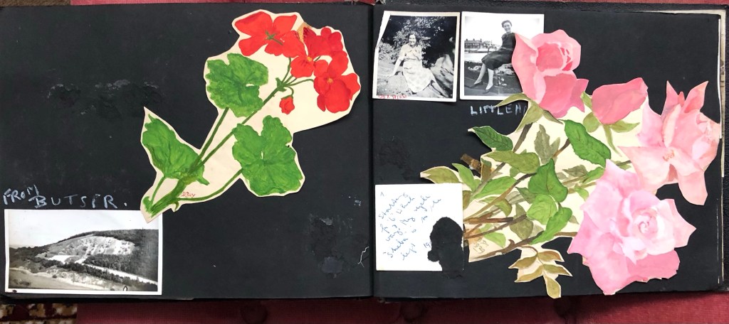 Beatrice was also an Artist and both of these beautiful flower watercolours above are by her, the Roses on the right are dated 1929, when she was 17. The writing on the back of the little photo above is the back of the photo below. Her bicycle was called ‘Sheba’.