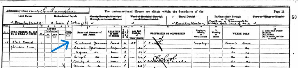 Here’s the 1911 census for the family of three, as it was then, as the youngest daughter wasn’t born until 1913. But if you look at what is written, the couple had also had another child that had died.
