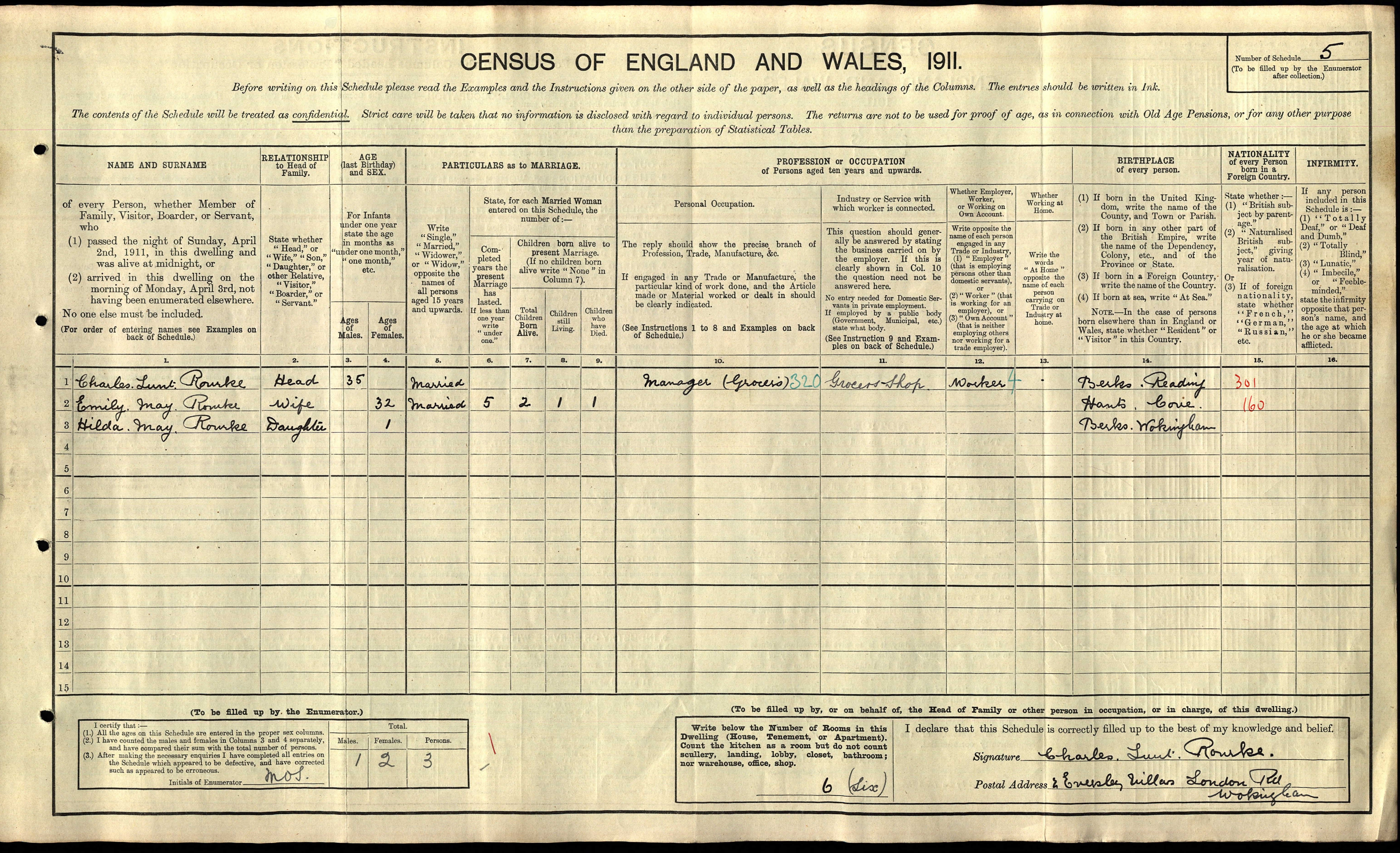 Sarah on Twitter/X said “Charles Lunt Rourke born Reading, wife Emily born Cove, Hants. On the 1921 census 2 daughters Hilda May age 11, and Barbara Agnes age 8. Living 64 Langborough Road Wokingham“. and “Could Early be a typo for Earley, which is on the edge of Reading?“