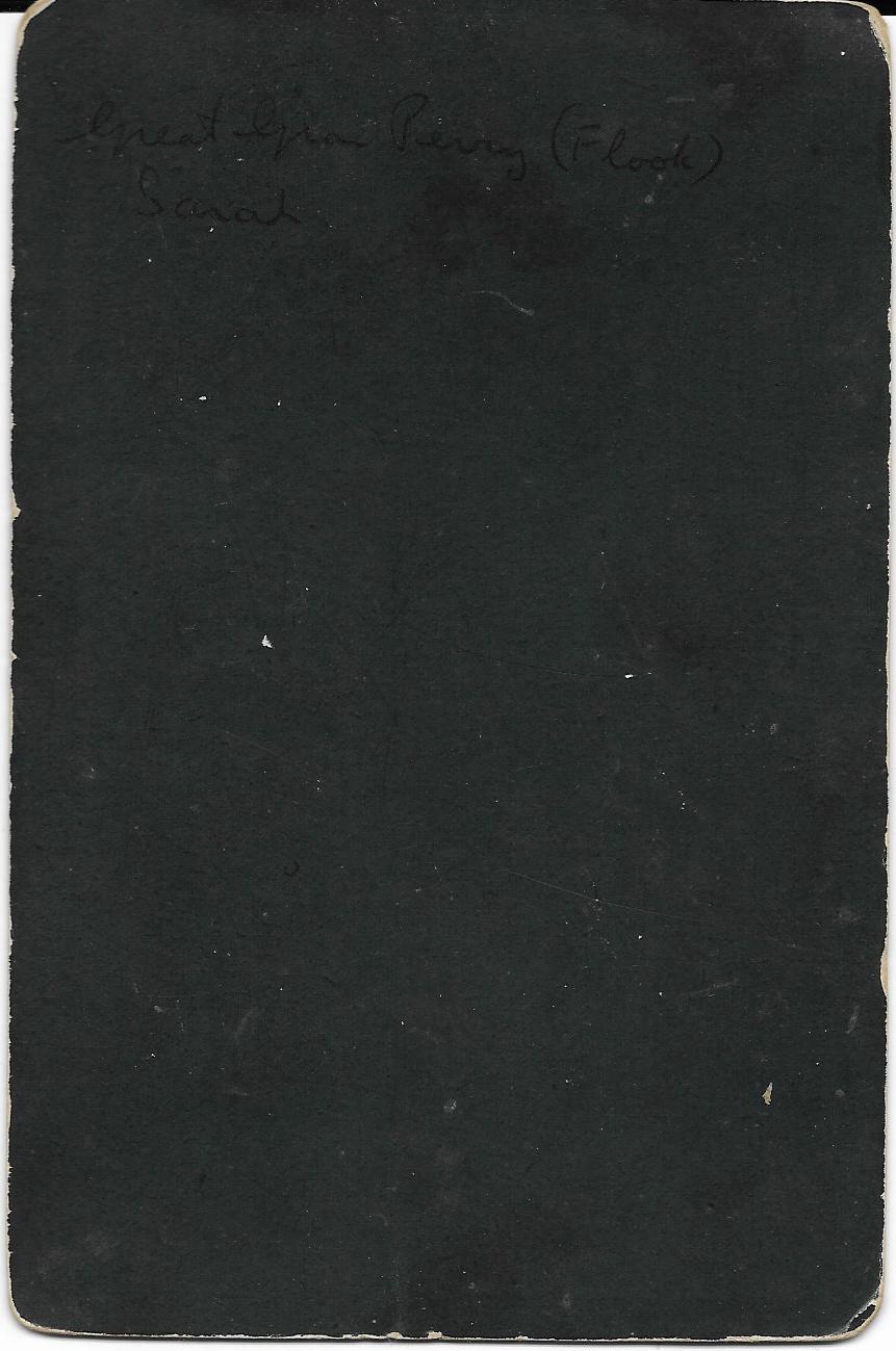 If you look very carefully at the back view you can just see where someone has written “Great Gran Perry (Flook) Sarah” It’s more visible when you tilt the card, always a good idea to do when you buy Carte de Visite or Cabinet Cards with a plain shiny back, just to see if there is any writing on it. Glad I checked all these as it would be easily missed.