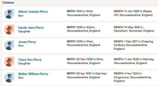 Sarah Ann was buried in St. Barnabas Churchyard, where she was married, with her parents and later her son Walter and his wife Rhoda, and son Stanley Flook Perry who died aged 29 of Tuberculosis, and daughter Rhoda Phyllis.