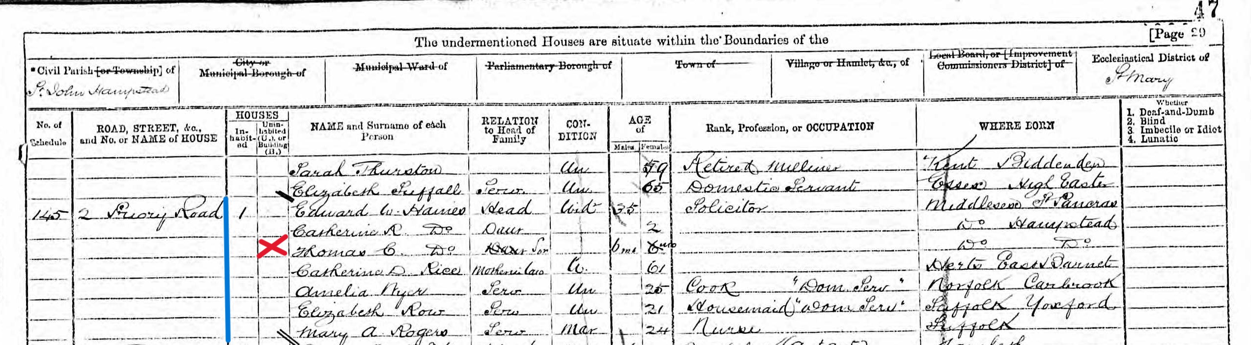 They also have a Nurse, a Cook and a Housemaid at number 2 Priory Road, Hampstead.