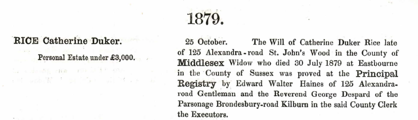 The following year Edward’s mother-in-law Catherine Duker Rice also died, as you can see she was still living with the family.