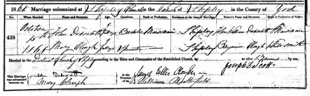 Following on from the great information that Anne had given me above I looked firstly for Clara’s marriage to John Dodsworth as I knew the date of that from Anne.