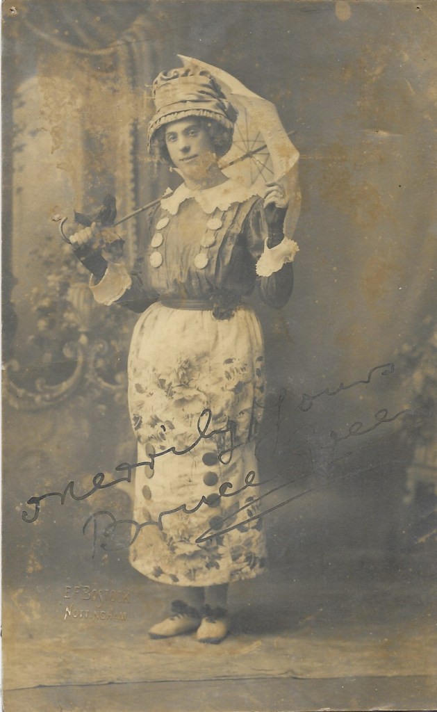 Back in February, I noticed this great old postcard was for sale on eBay. The description was ‘1924 Real Photo Postcard Performer Bruce Signed Impressed Studio Nottingham’.