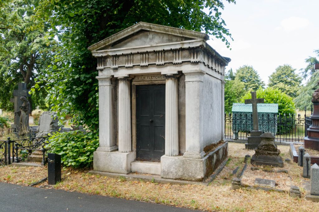 Charles Edward Bancroft is resting in this Mausoleum above. But there is just one name on the outside, William F H Fletcher, who was Ida’s first husband. He died in 1879, then also interred here are Ida’s second husband, John James Elmes, who died in 1888, then Ida was placed here in 1920 after her death.