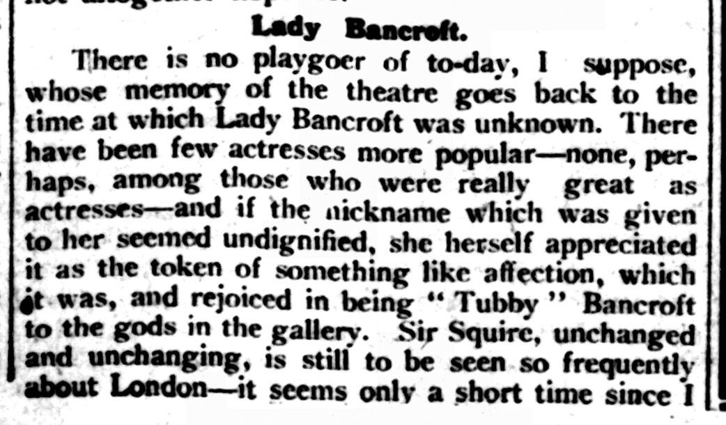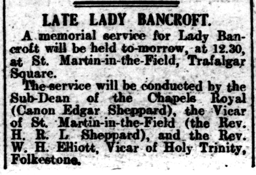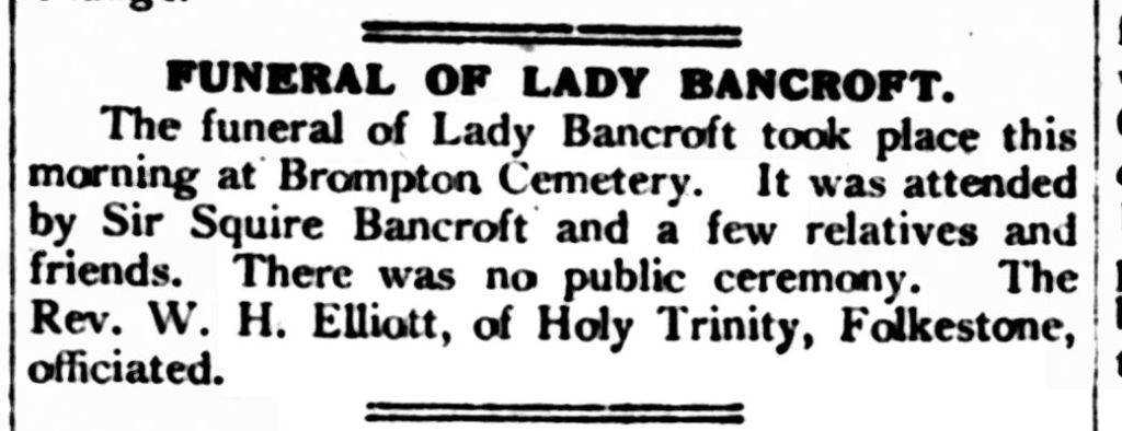 I did find this small mention of Lady Bancroft, 12 days after Charles’ death.