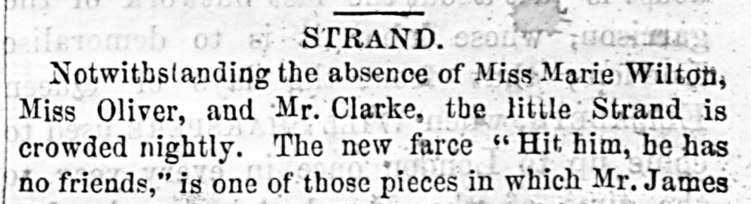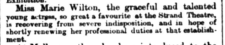 Then a mention of the absence of Miss Marie Wilton in October 1860 from the Strand.