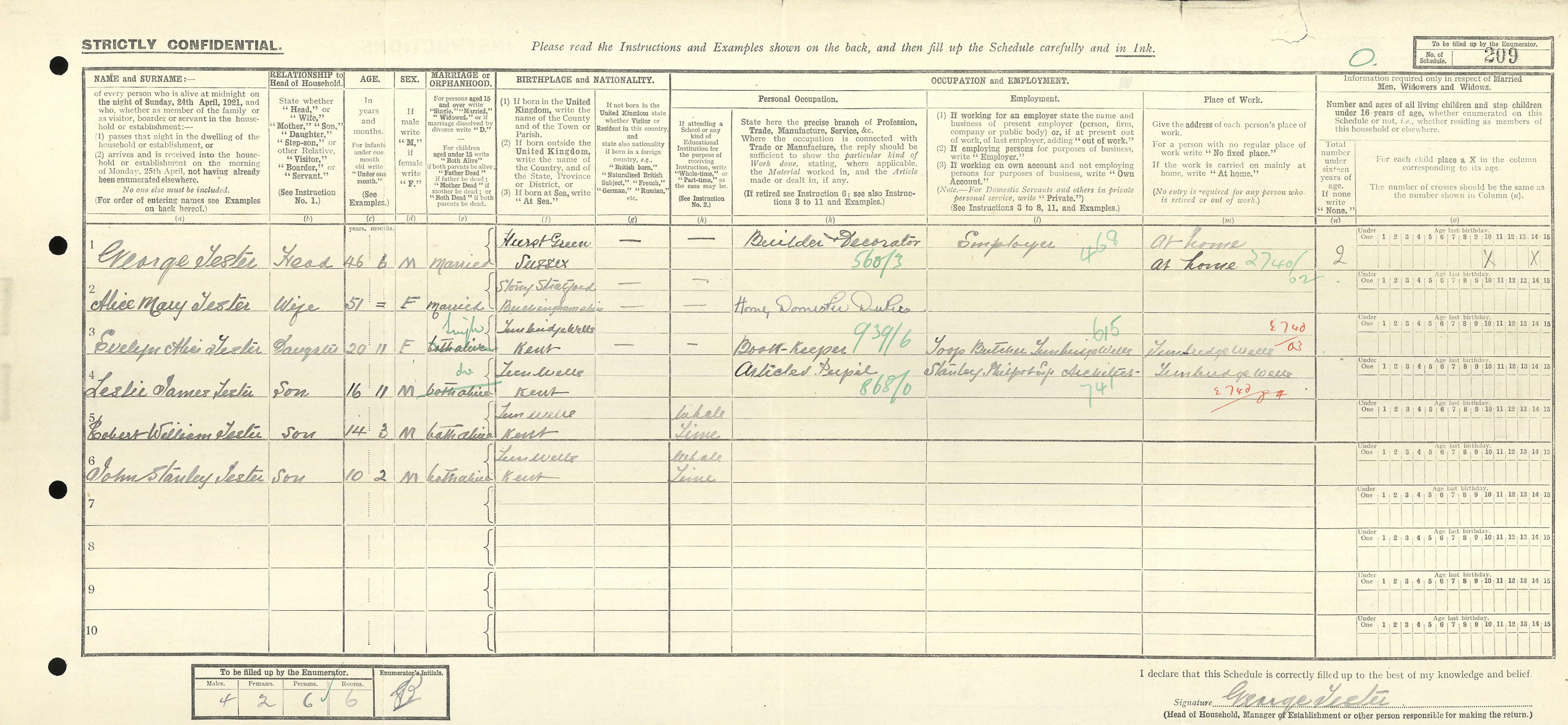 In 1921 on the census George was a Builder and Decorator, an Employer. He died on 28 March 1950 at the age of 75.
